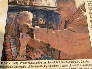TUESDAYS 11AM to 12:30 @ MAP Distro, 402 Grand Ave. Enter from the rear parking lot. Since "MAP Distro" is a Mutual Aid Partners food distribution event bringing animals inside the church premises is no longer allowed. If you must bring the animal inside it must be on a leash or in an carrier NO EXCEPTIONS.
